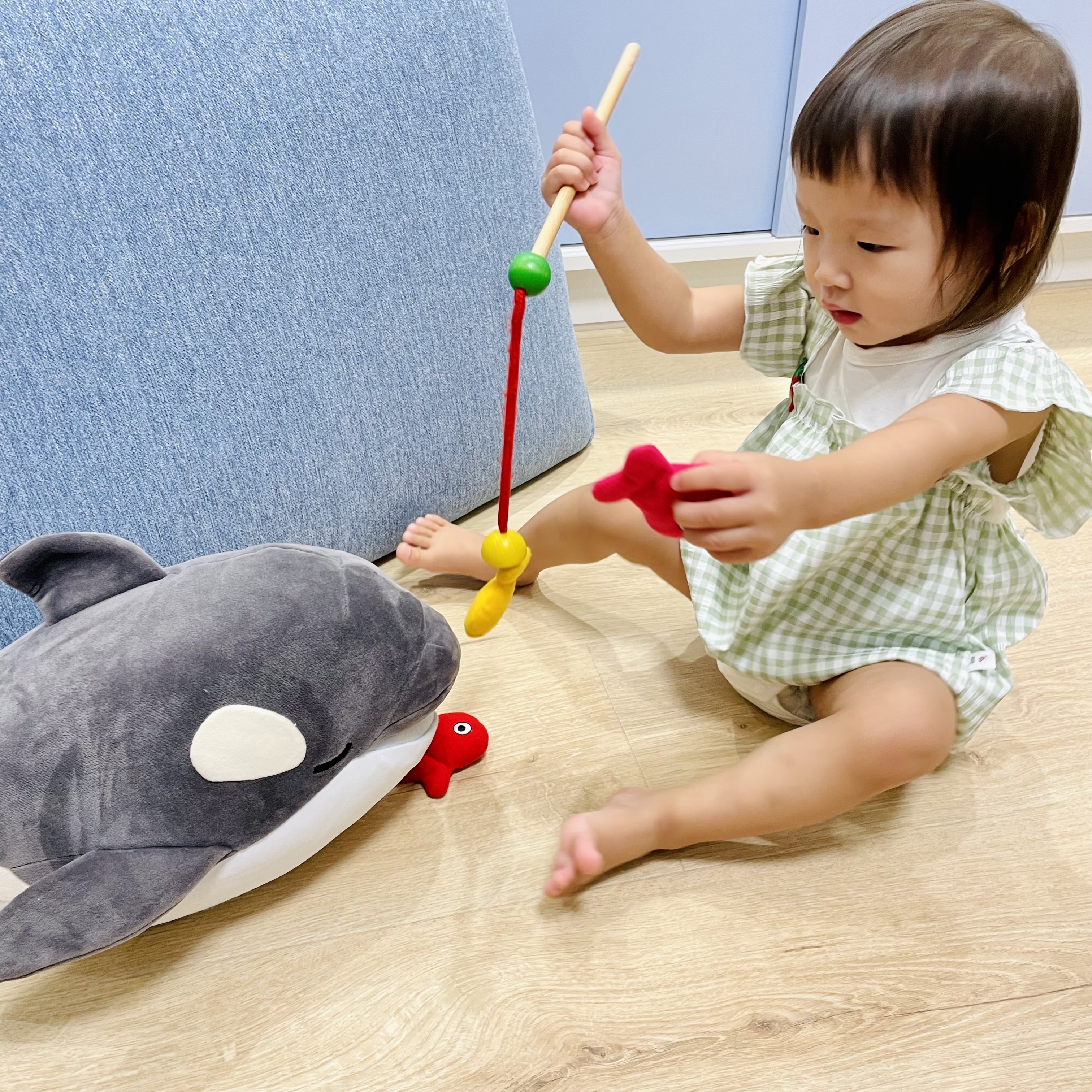 我們家玩具/教具很多,即使有專用桌椅、工作毯,有時孩子就是想更廣袤的地方玩,舒適的木地板變成他們的優先選擇;